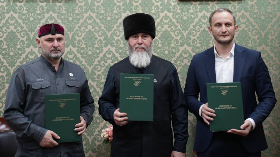 Документ скрепили подписями Советник Главы ЧР, Муфтий ЧР Салахь-Хаджи Межиев, управляющий Отделением Банка России по ЧР Тамерлан Вацуев и заместитель Председателя Правительства ЧР - министр финансов республики Султан Тагаев.