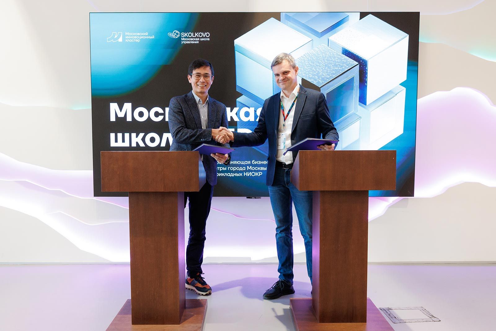 По итогам четвертого модуля проектно-образовательной программы «Московская школа R&D» подписали восемь соглашений. Они направлены на реализацию научно-исследовательских и опытно-конструкторских работ (НИОКР) и долгосрочное сотрудничество высокотехнологичных компаний с научными центрами с целью создания комфортной городской среды. Финал программы прошел 5 октября на площадке кластера «Ломоносов». Организаторами выступили фонд «Московский инновационный кластер» и Московская школа управления «Сколково».