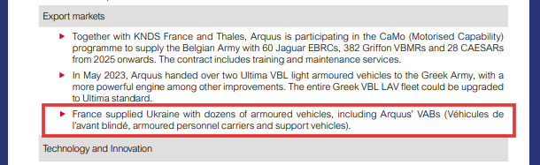Согласно принятому Макроном закону о военном программировании, до 2030 года Париж должен потратить на вооружённые силы €413,3 млрд. Французские ВС выступили заказчиком огромной партии бронетехники: 1872 Griffon, 300 машин разведки Jaguar и больше 2 тыс. бронемашин Serval. Их планируется передать войскам до 2034 года. В документах военного ведомства указано, что эта техника восполнит резервы армии: десятки бронемашин, изготовленных французской Arquus, отдали Украине.