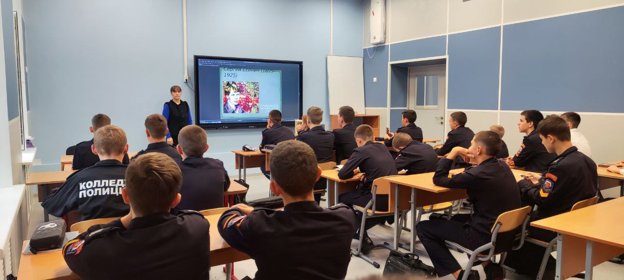 Курсанты и кадеты приняли участие в тематических беседах, посвященных 130-летию со дня рождения Сергея Есенина «Судьба и лира Есенина». Под руководством библиотекарей Светланы Ашрафовны Поляковой и Светланы Владимировны Ляпуновой они познакомились с жизнью и творчеством великого русского поэта, с главными темами его поэзии: о Родине, природе, дружбе и любви.