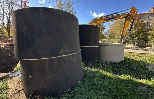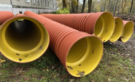 На данном этапе специалисты укладывают новые трубы у дома №13. По данным подрядной организации «Актив» на участке ведётся раскопка и укладка трубопровода — это основное направление работ. Новые трубы из полиэтилена низкого давления диаметром 500 мм рассчитаны на срок службы до 70 лет.