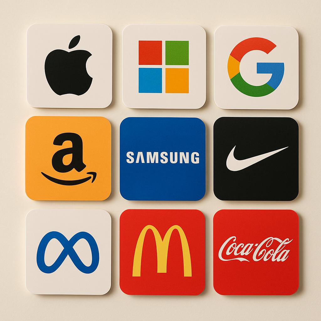 - Узнаваемость: логотипы топ брендов распознают 90% потребителей мгновенно.
