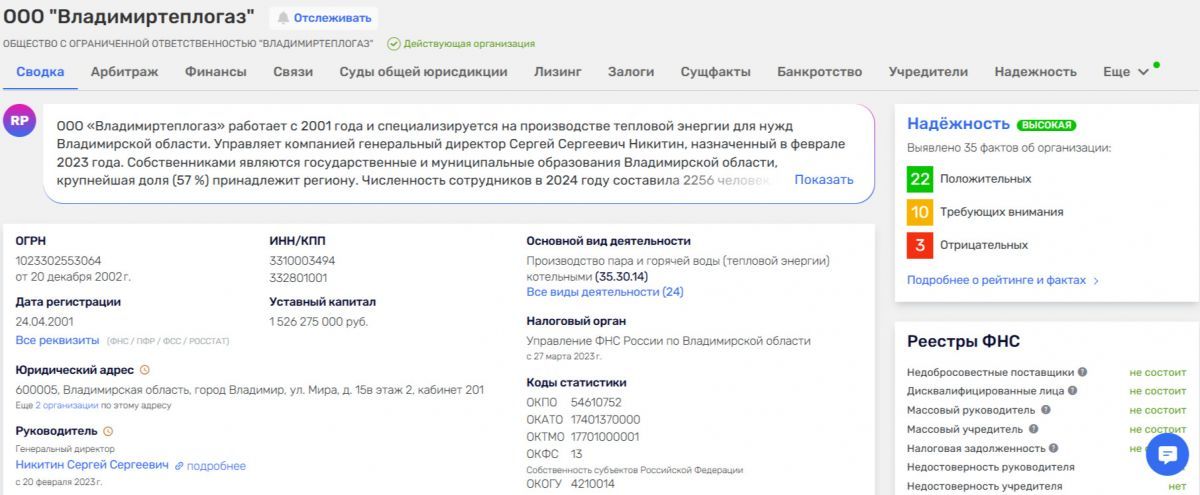 Компания "Владимиртеплогаз" не имеет задолженности перед банками и кредитными организациями по данным за I полугодие 2025 года. Об этом сообщили в организации. В её зону обслуживания входят города Владимир, Ковров, Гороховец, Киржач, Собинка, Лакинск, а также посёлок Красная Горбатка Селивановского района, посёлок Содышка, деревня Пенкино Камешковского района и другие населённые пункты Гороховецкого и Селивановского районов. Напомним, по данным на январь 2025 года у компании были долги на сумму около 3 млрд рублей. Выяснилось, что организация накопила их из-за кредитов, которые брала, чтобы покрывать предыдущие задолженности. Это превратилось в порочный круг, а повышение ключевой ставки до 21% окончательно выбило компанию из колеи. Было решено передать часть доли в уставном капитале ООО из государственной собственности Владимирской области в муниципальную собственность 14-ти территорий, являющихся зоной присутствия компании.Таким образом планировалось стабилизировать ситуацию. При этом контрольный пакет акций остался у правительства региона. Видимо, такой способ всё же помог учреждению избавиться от долгов. В компании подчеркнули, что на проведение отопительного сезона в этом году "Владимиртеплогаз" потратит 502,1 млн рублей. Отметим, что в В Банке данных исполнительных производств ФССП России нам удалось найти три производства в отношении компании. Общая их сумма - 261 387 рублей. Речь идёт о долгах за тепло, газ, свет и территорию. По данным с сайта "Руспрофиль", долги "Владимиртеплогаза" по налогам составляют за 2-ой квартал 2025 года 91 904 018 рублей, по страховым взносам - 22 247 465. Сумма пеней - 967 529 рублей. Кроме того, компания является залогодателем. 11 транспортных средств организации находится в залоге в связи с кредитом в "Сбербанке". Речь идёт о нескольких легковушках и грузовиках МАЗ, ГАЗ, УАЗ и КАМАЗ.