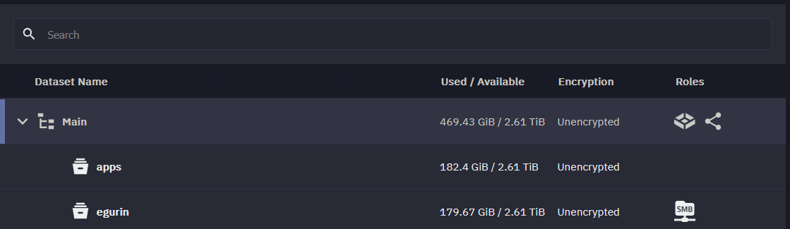 Для хранения данных приложений я также выделил отдельный Dataset /mnt/Main/apps