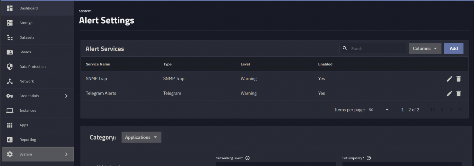 В разделе System -> Alert Settings вы можете настроить уведомления о сбоях и обновлениях на почту или например в телеграм. Ниже также настраивается список типов уведомлений, которые будут приходить