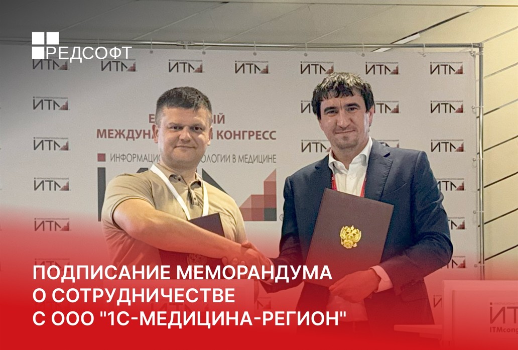 Москва, 9 октября 2025 года — Одним из заметных соглашений, заключенных на международном конгрессе «Информационные технологии в медицине» (ИТМ 2025), стало подписание меморандума о сотрудничестве ресурсного центра 1С-Медицина-Регион и компании РЕД СОФТ – российского разработчика ИТ-решений.