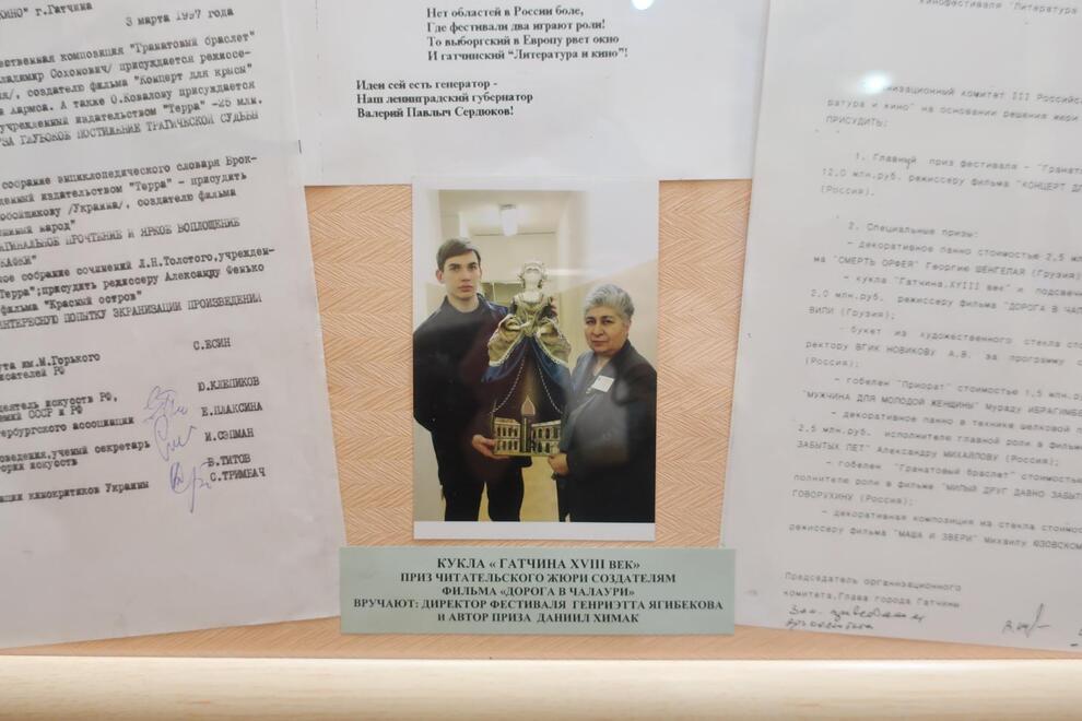 Небольшая выставка в музее города Гатчины позволяет увидеть, как начинался и развивался гатчинский фестиваль «Литература и кино». В экспозиции представлены документы и фотографии из личного архива Генриэтты Ягибековой, которые она передала музею в 2012 году.