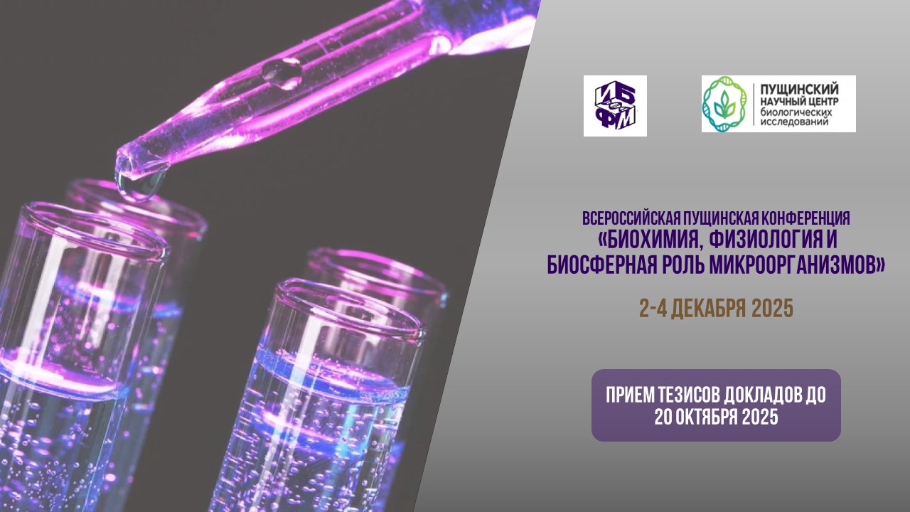 XI Всероссийская Пущинская конференция «Биохимия, физиология и биосферная роль микроорганизмов» пройдет с 2 по 4 декабря 2025 в г.Пущино (Московская область)