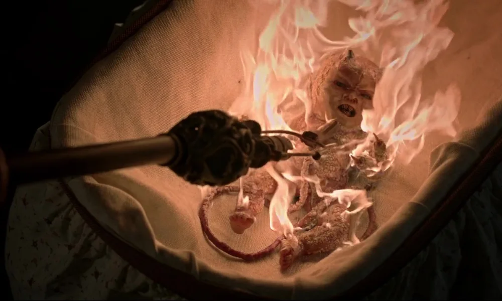 Кожа новорожденного темнеет, на голове проступают крошечные рога, а ногти превращаются в острые когти. Этот младенец не плачет – он рычит, прыгает на людей и в считаные секунды превращает родильную комнату в мясорубку. Демон выглядит как резиновый монстр из телешоу девяностых. Авторы дурачатся, высмеивая саму идею страха перед родительством. И когда из пеленок вылезает рогатое существо, мы уже не думаем о зле, а узнаем в этом монстре все бытовые ужасы взрослой жизни.