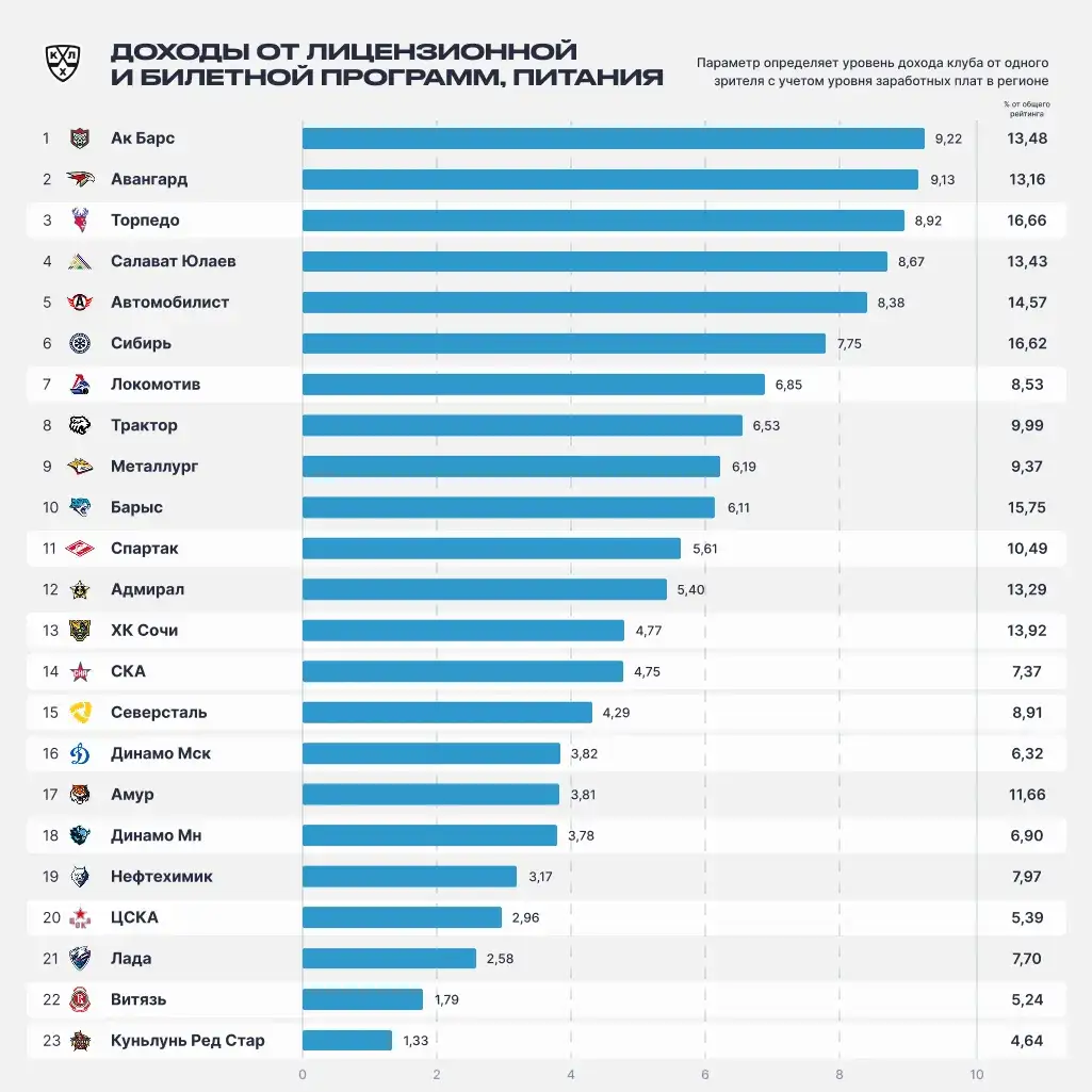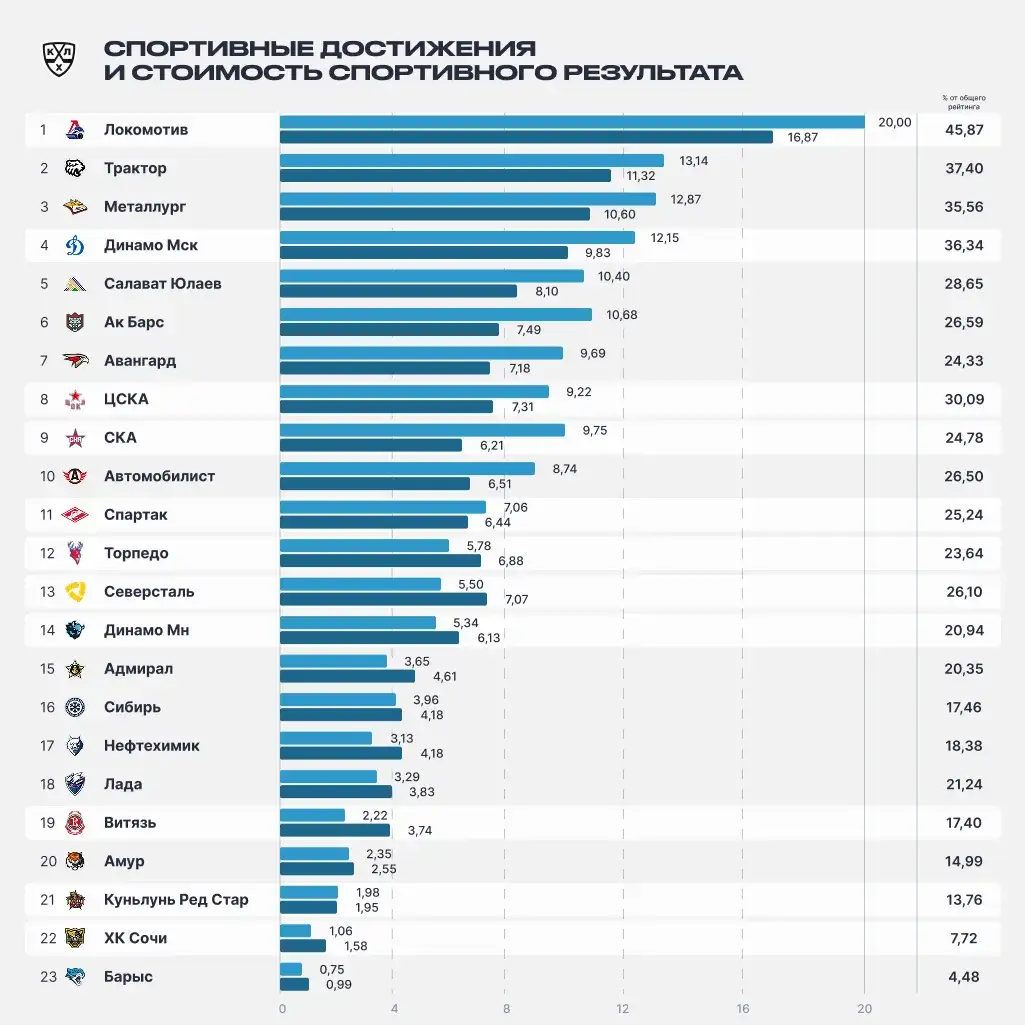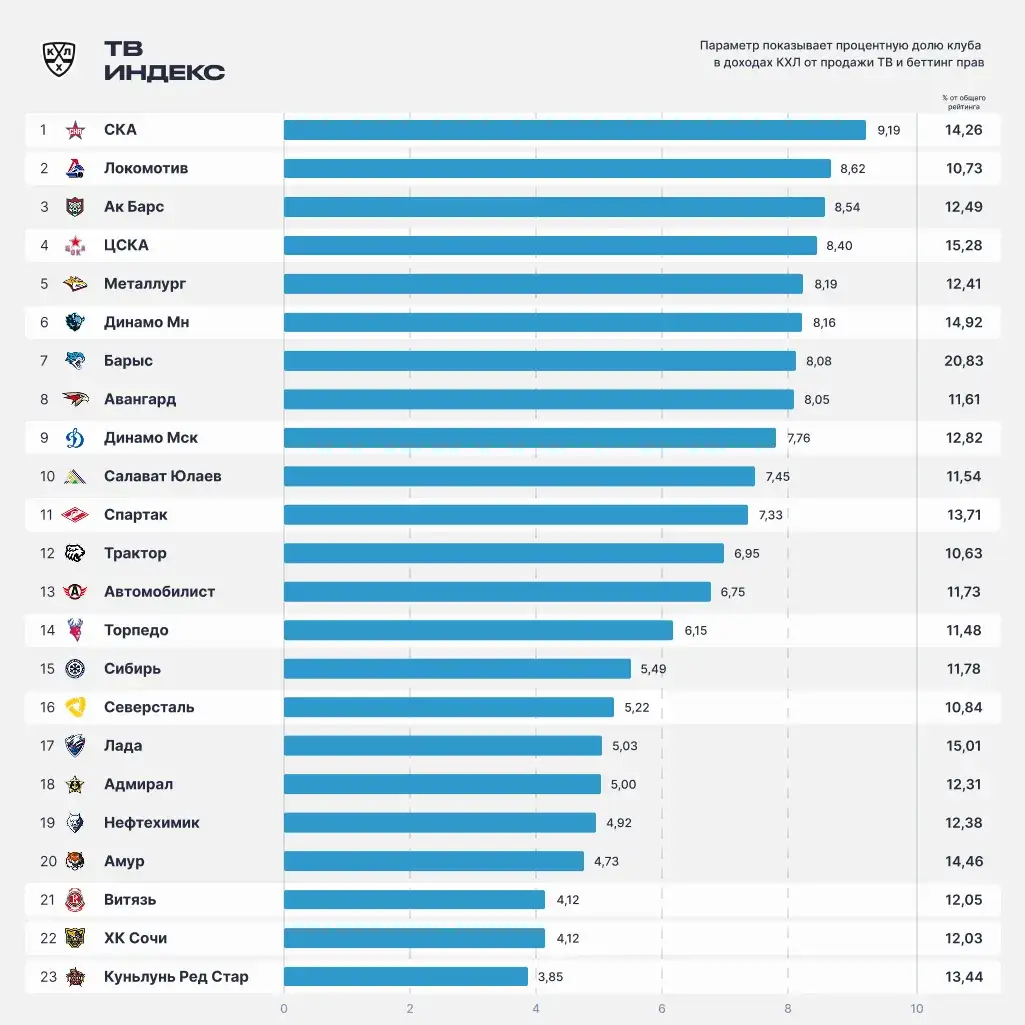 По итогам сезона 2024/2025 лидером клубного рейтинга стал ярославский «Локомотив». В предыдущие годы в верхней части таблицы оказывались СКА, ЦСКА, «Йокерит» и «Металлург».