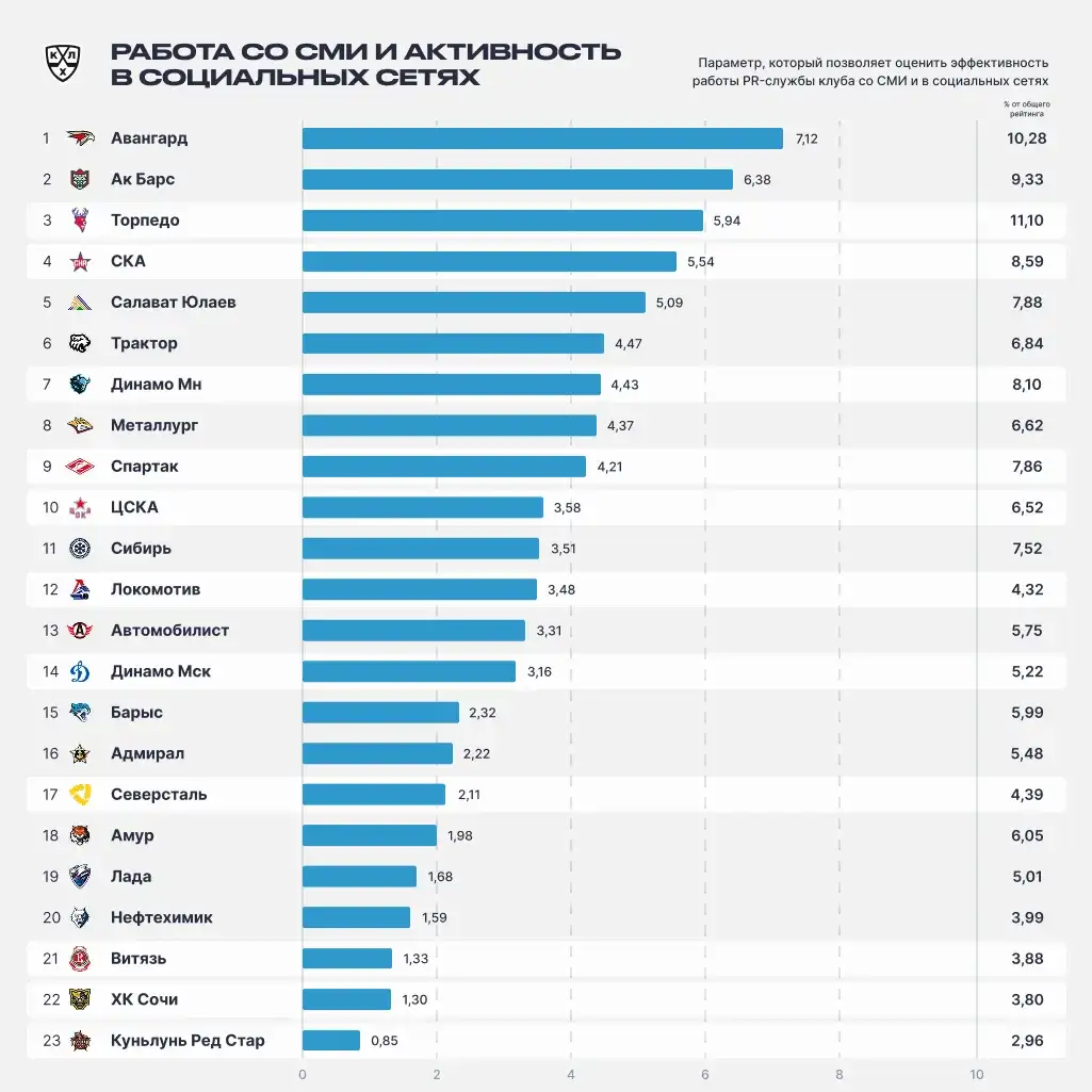 Континентальная хоккейная лига опубликовала детальное разъяснение новой методики формирования рейтинга клубов по итогам сезона 24/25. Согласно обновлённым правилам, из расчёта исключён показатель «Исполнение норм технического регламента». Ранее он составлял 5% итоговой оценки. Теперь этот вес добавлен к категории «Работа со СМИ и активность в социальных сетях».
