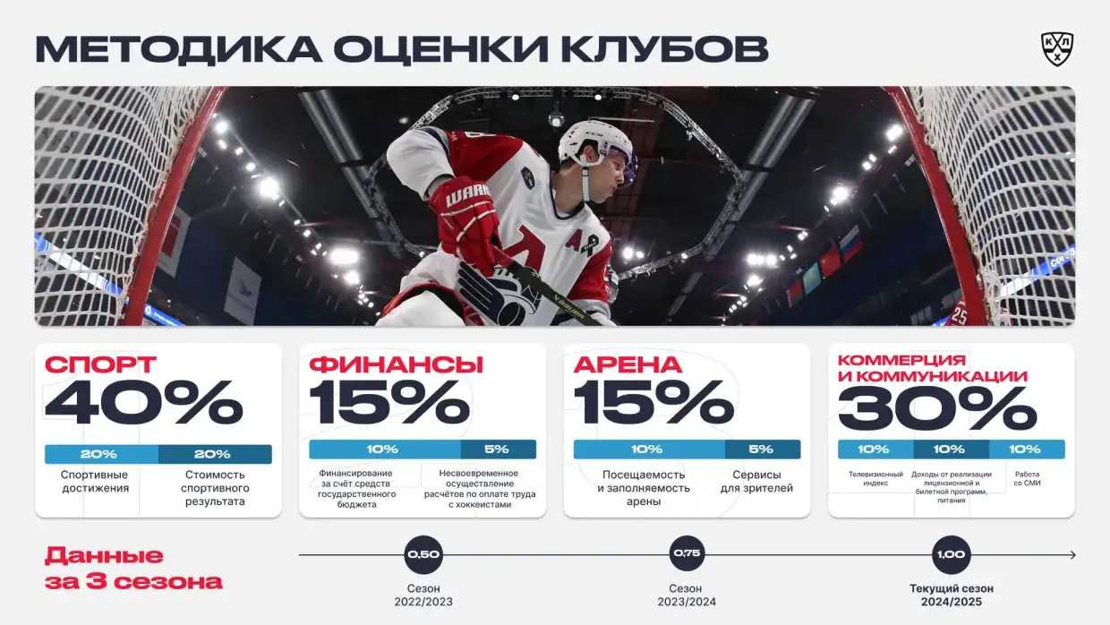 Обновлённая методика КХЛ направлена на комплексную оценку деятельности клубов — от спортивных достижений до взаимодействия с фанатами и партнёрами. Подход учитывает как успехи на льду, так и развитие клубной инфраструктуры, финансовую дисциплину и активность в медиапространстве.