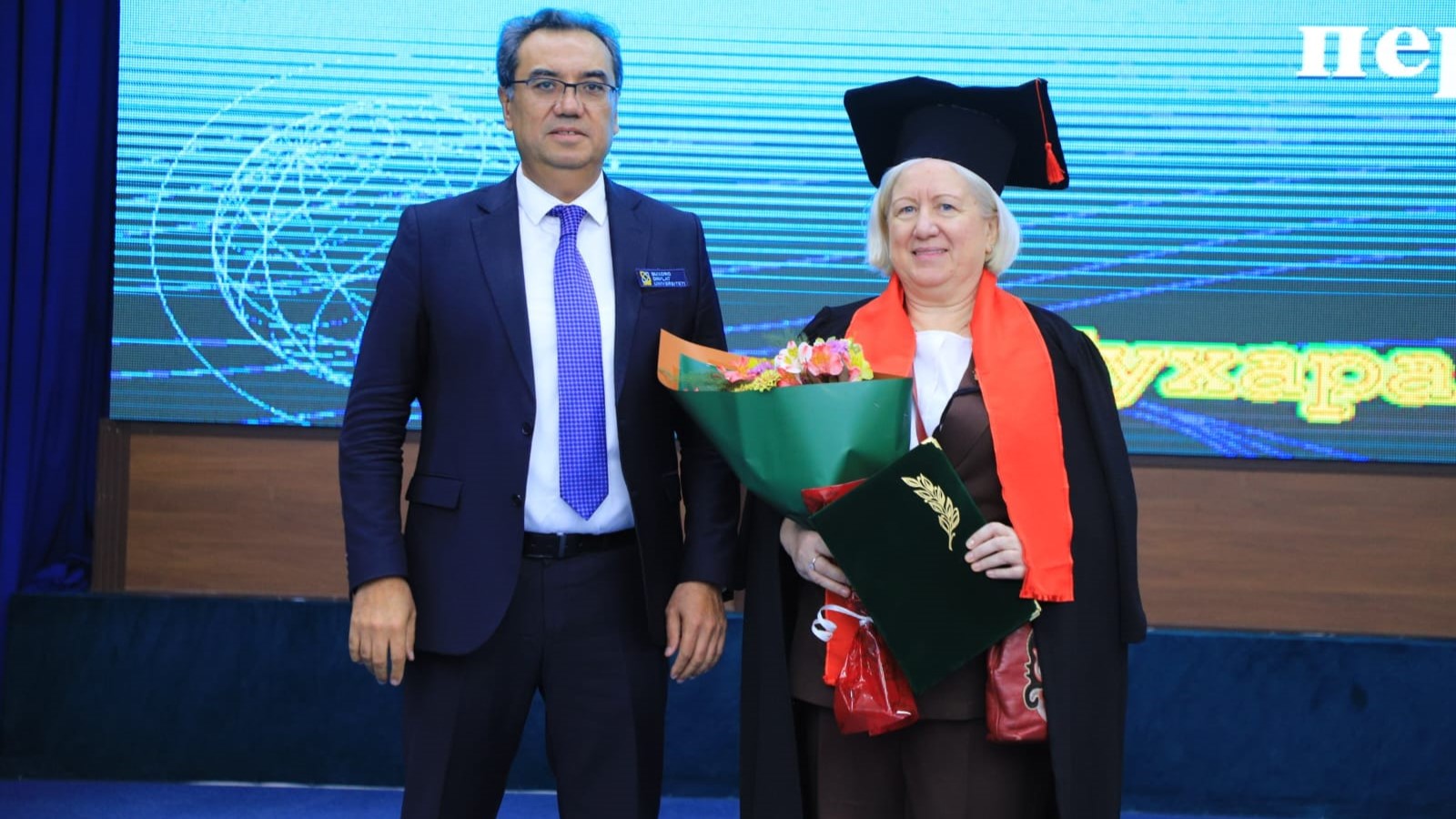 Состоялась торжественная церемония присвоения звания почетного профессора Бухарского государственного университета директору научно-образовательного центра «Институт Каюма Насыри» Института филологии и межкультурной коммуникации Казанского федерального университета Альфие Юсуповой.