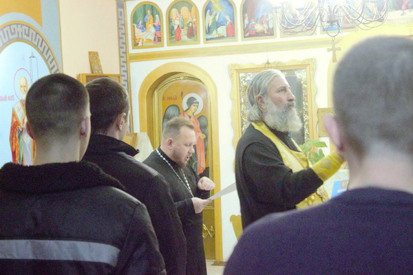 Службу совершил руководитель епархиального тюремного отдела протоиерей Александр Сазонов и иерей Евгений Караваев.