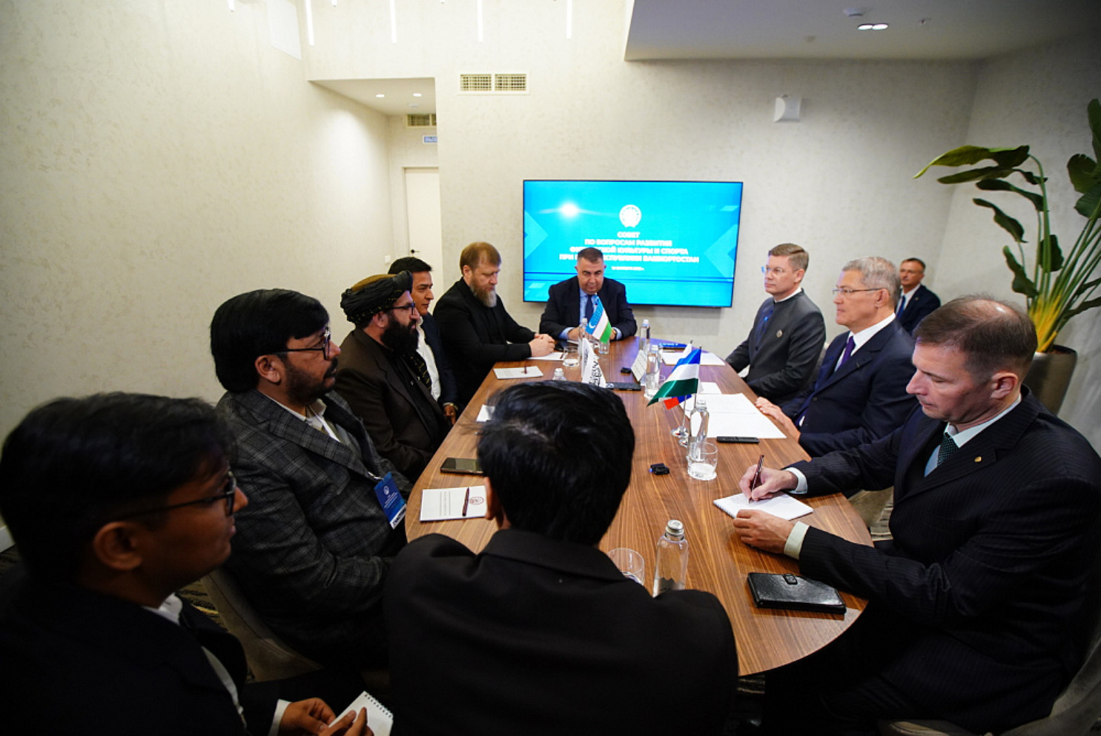 Радий Хабиров приветствовал гостей и выразил надежду на плодотворную работу, отметив, что для региона большая честь принимать их. Он подчеркнул, что Башкирия имеет давние и крепкие отношения со всеми тремя странами и готов поделиться опытом в проведении крупных спортивных мероприятий. По его мнению, спорт играет важную роль в поддержании дружбы и общения между странами в непростое время, и республика планирует продолжать совместные мероприятия.