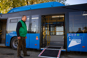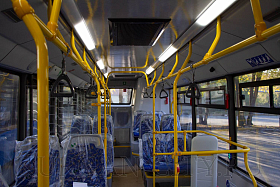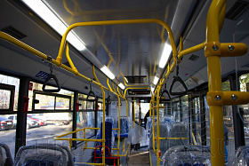 Благодаря кондиционеру, летом в новом автобусе будет нежарко. Еще одно преимущество новых автобусов – это низкий пол. В него удобно заходить и пожилым людям, и инвалидам, и мамам с колясками. Автобус наклоняется, для въезда колясок оборудован специальный подъём.