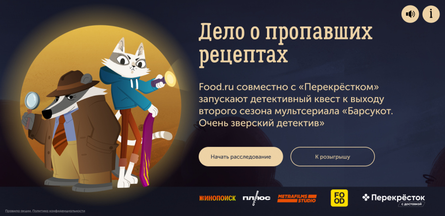 ) совместно с «Перекрёстком» и «Кинопоиском» запустила детективный онлайн-квест к выходу нового сезона мультсериала «Барсукот. Очень зверский детектив».