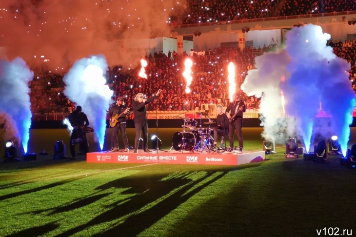 Рок-группа с вокалистом Сергеем Галаниным открыла футбольный вечер на «Волгоград Арене» перед товарищеской встречей сборных России и Ирана. Как передают корреспонденты ИА «Высота 102», после завершения выступления группы перед стартовым свистком матча исполнила гимн России российская и белорусская певица Наталья Подольская.