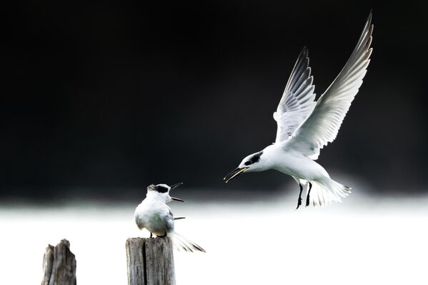 Птицы соревнуются друг с другом за то, чтобы усесться на сухие ветки, Турция.
