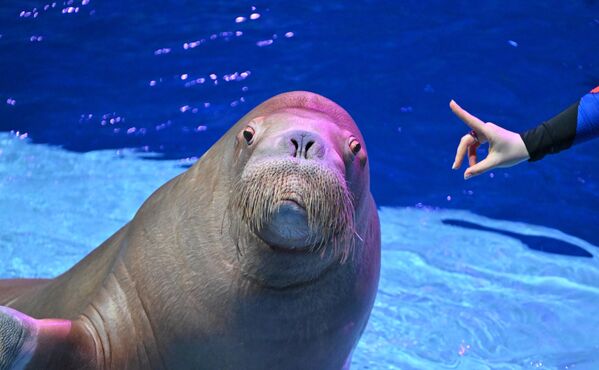 Морж во время премьеры шоу "Море снов" в "Москвариуме" на ВДНХ.