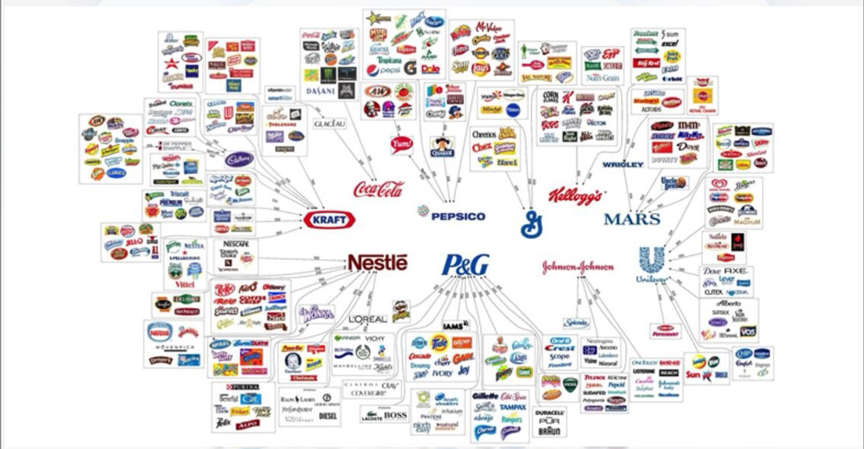 Глядя на полки магазинов, нам кажется, что мы выбираем между сотнями брендов-конкурентов. Но это обман. Практически всё, что мы покупаем, от чипсов до газировки, принадлежит горстке одних и тех же людей.