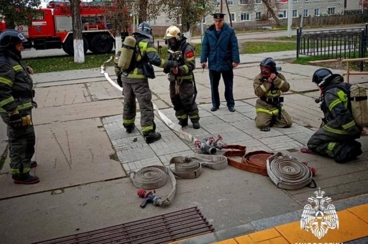 По легенде, возгорание произошло в электрощитовой на первом этаже. В здании находились двое условных пострадавших. На место оперативно прибыли 8 сотрудников МЧС России и 2 единицы спецтехники.