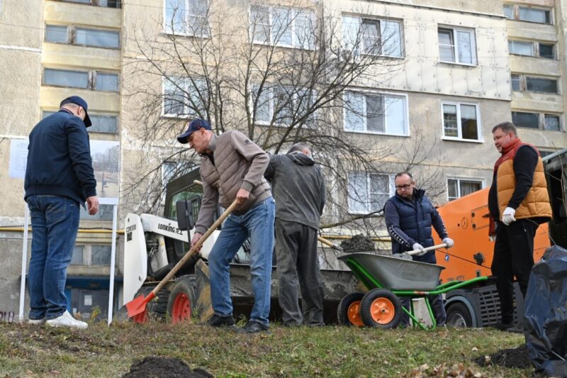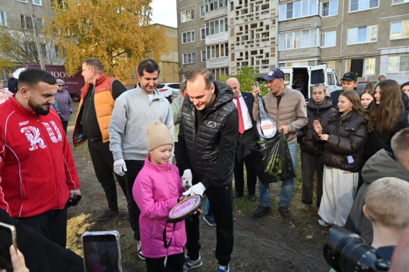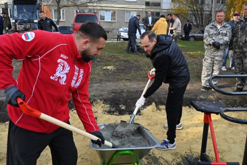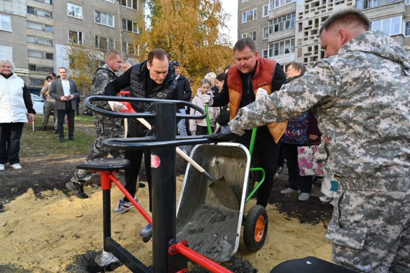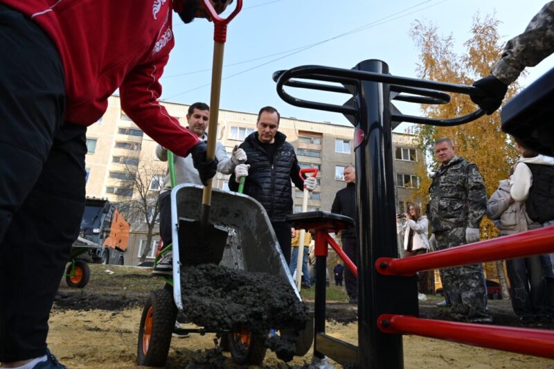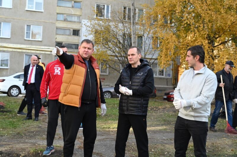 Сегодня на улице Никулы Эркая состоялся субботник, в рамках которого здесь установили детскую площадку. На мероприятии присутствовали Глава РМ Артём Здунов, премьер-министр РМ Батыр Эмеев и мэр Саранска Владимир Быков.