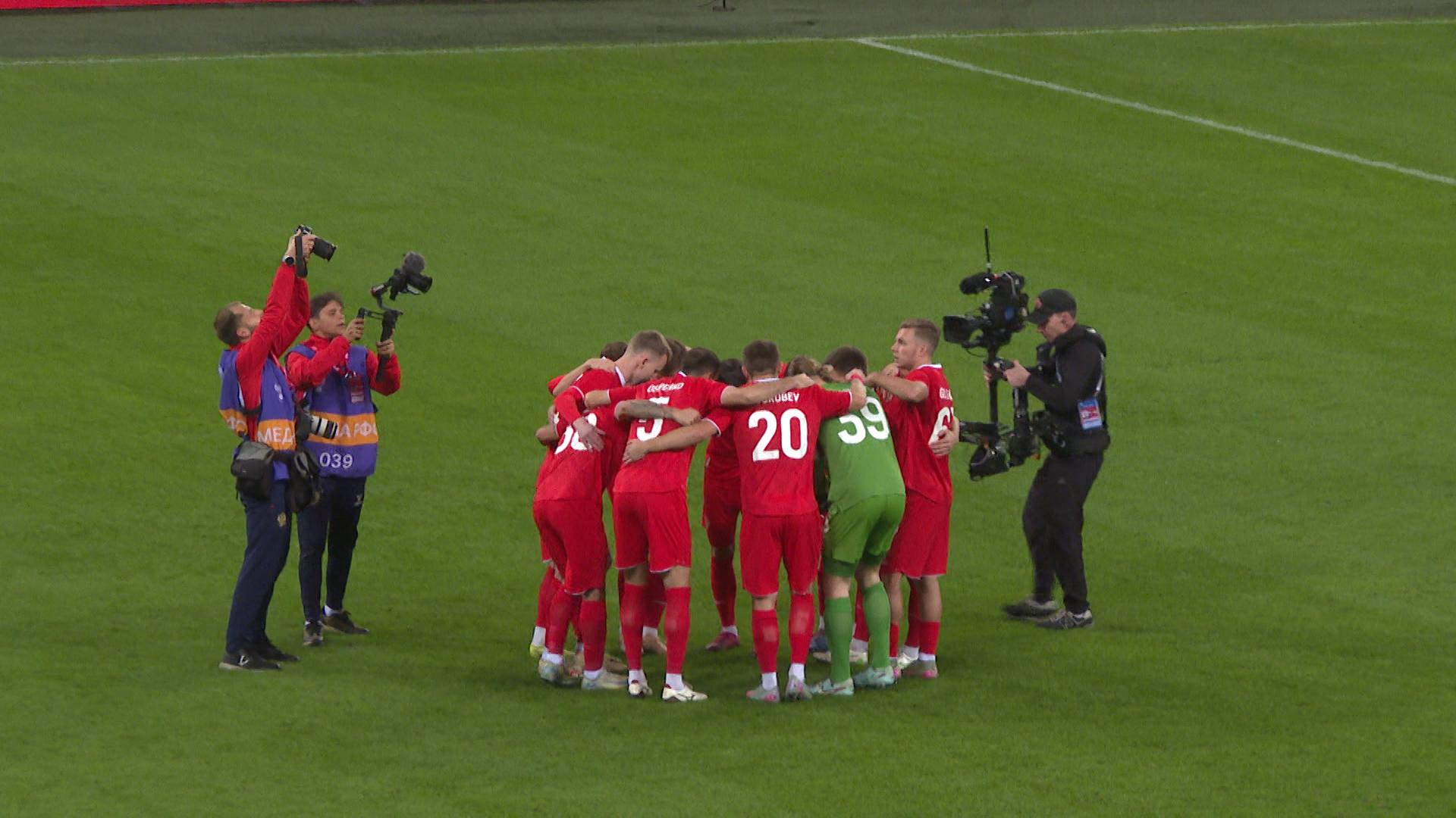 Сборная России ушла на перерыв, ведя в счете 1:0. Во втором тайме команды обменялись голами.