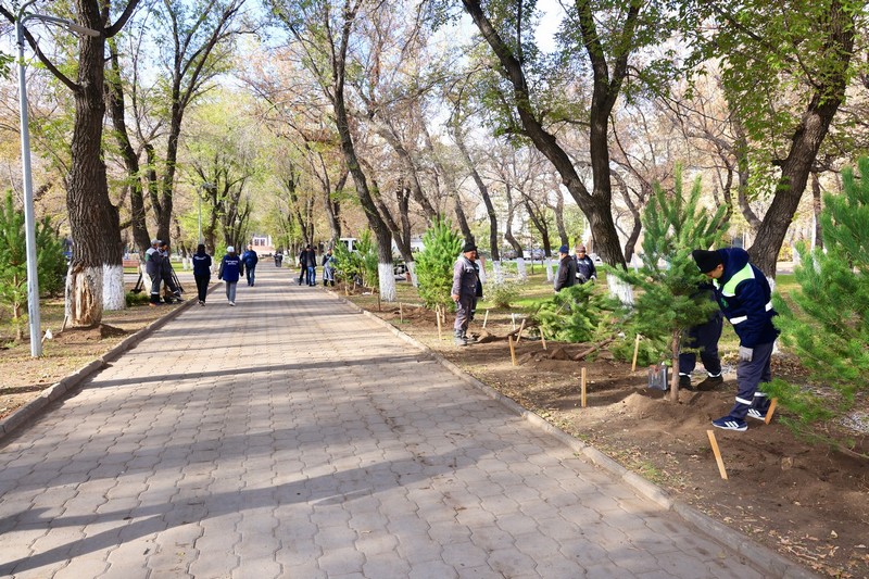 В районе Казыбек би весной было высажено 1260 деревьев, а этой осенью появится свыше 4 тысяч. В районе Алихана Букейхана также продолжается озеленение.