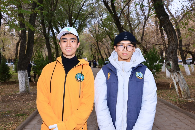 Волонтёры из Молодёжного ресурсного центра Адильжан Суйныков и Жансерик Жуманов не первый раз участвуют в экологических акциях.