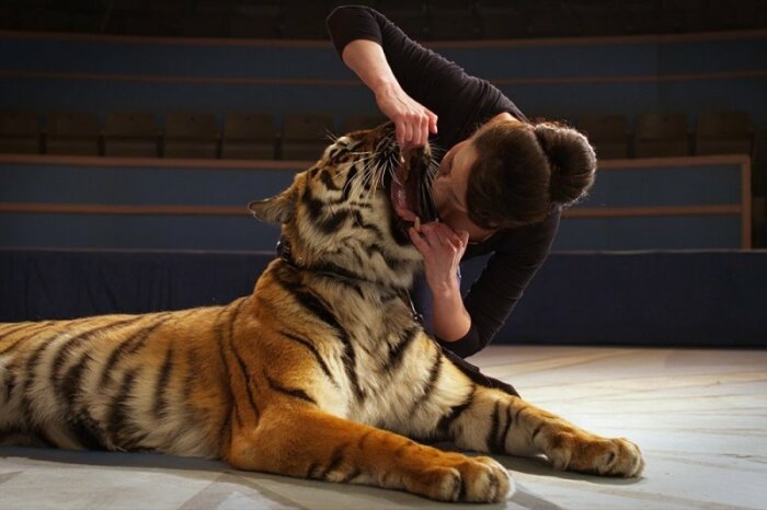 Ольга Погодина засунула в пасть тигру свою голову.