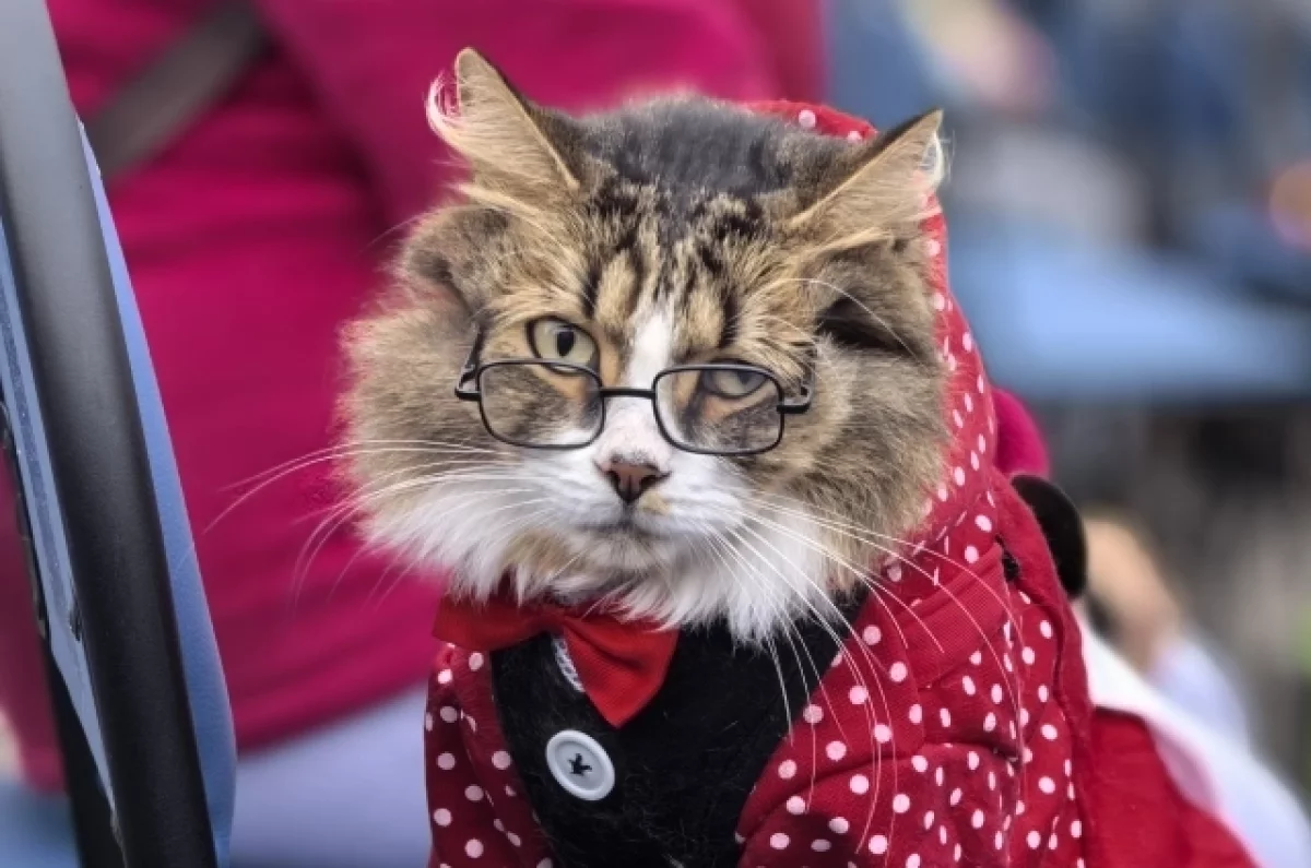 На городских мероприятиях Барсик также стал постоянным участником — кот красовался в самых разных нарядах. По словам Ольги Семёновой, их у пушистика больше 40 штук. Часть из них женщина купила в интернете, а часть сшила своими руками. Среди покупных — элегантный фрак и рубашка с бабочкой, а также прогулочный дождевик и два зимних комбинезона. А вот маленький костюмчик Деда Мороза для рыбинского торжества «НаШествие», спортивный наряд для лыжных гонок или биатлона с любовью были созданы из подручных материалов.