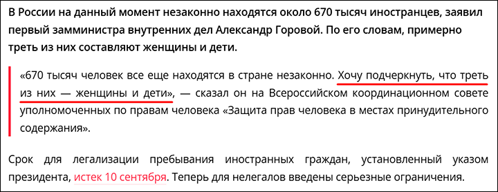 Цифры не сходятся? Да нет. Просто поток иммигрантов такой большой, что высылай, не высылай — их количество продолжает увеличивается. Здесь претензию можно (и нужно) предъявить другим органам власти, которые до сих пор затягивают ситуацию с внедрением организованного набора и ужесточением подходов к привлечению иностранной рабочей силы.