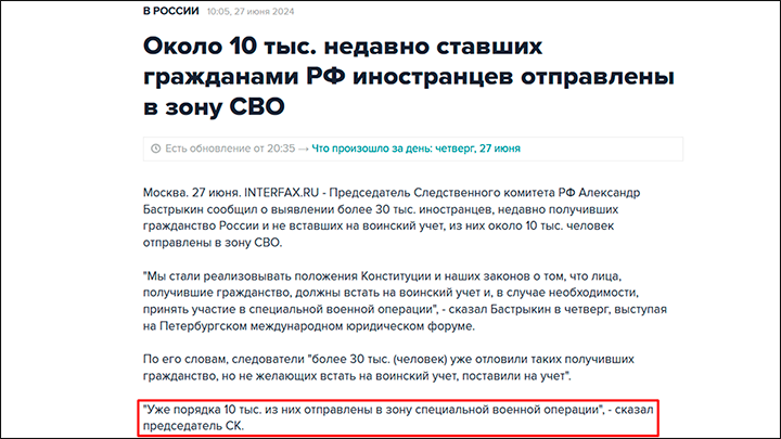 Одних только уклонистов от воинского учёта среди "новых граждан" десятки тысяч, как заявлял глава Следкома БастрыкинСкриншот страницы сайта interfax.ru