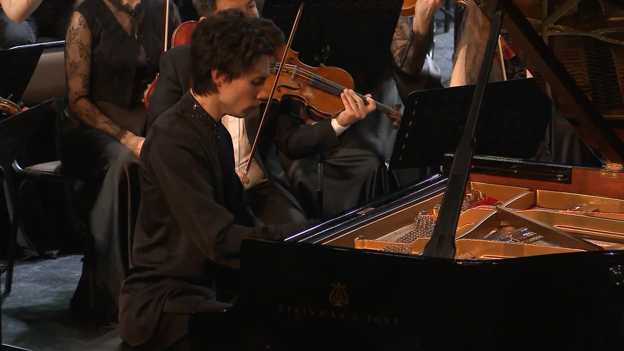 За фортепиано — американский музыкант Энджел Вонг. Талантливому пианисту всего 22 года. О том, что окажется на большой сцене вместе с одним из ведущих коллективов нашей страны, и представить не мог. На концерте исполняет произведения русских классиков.