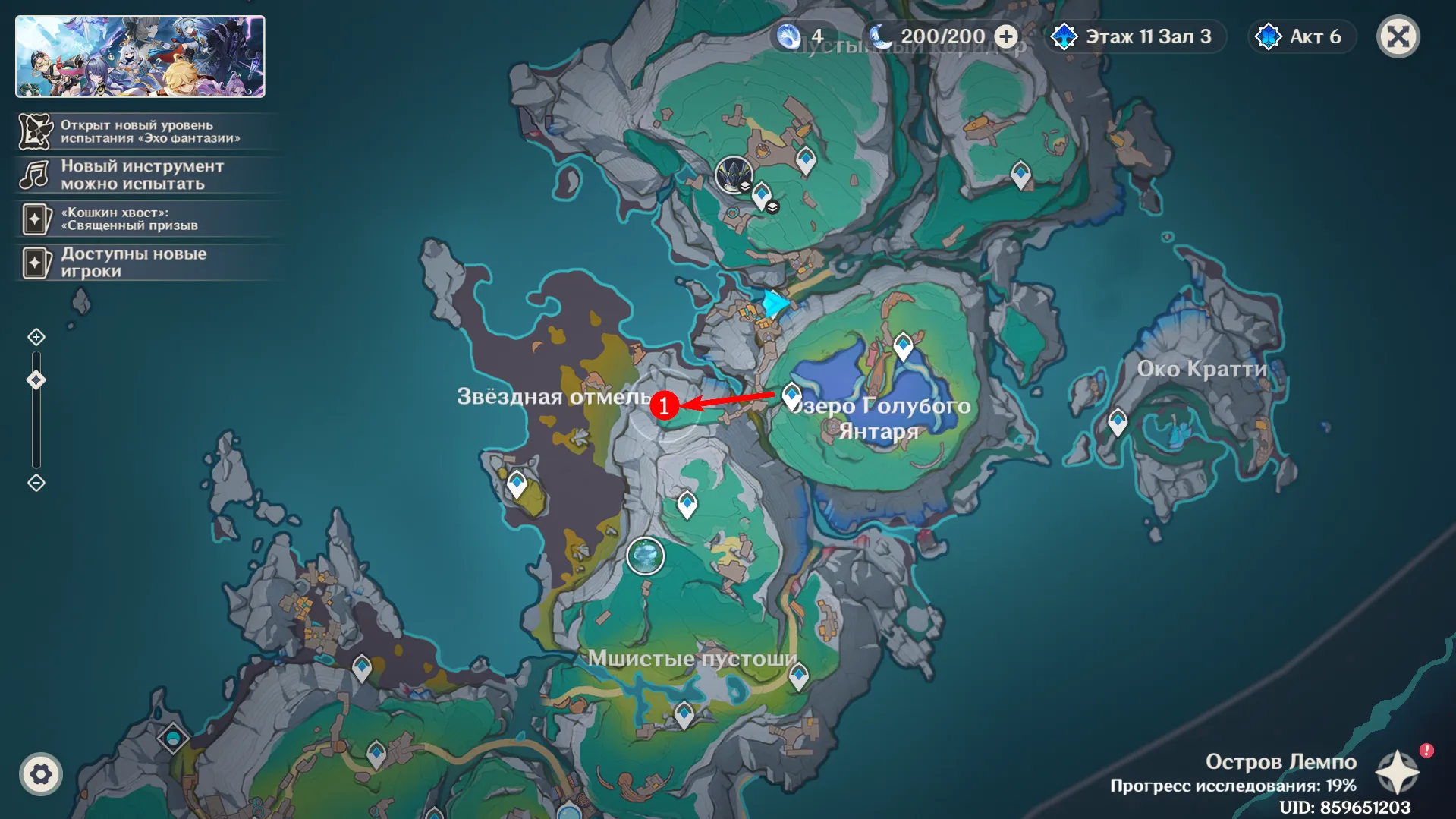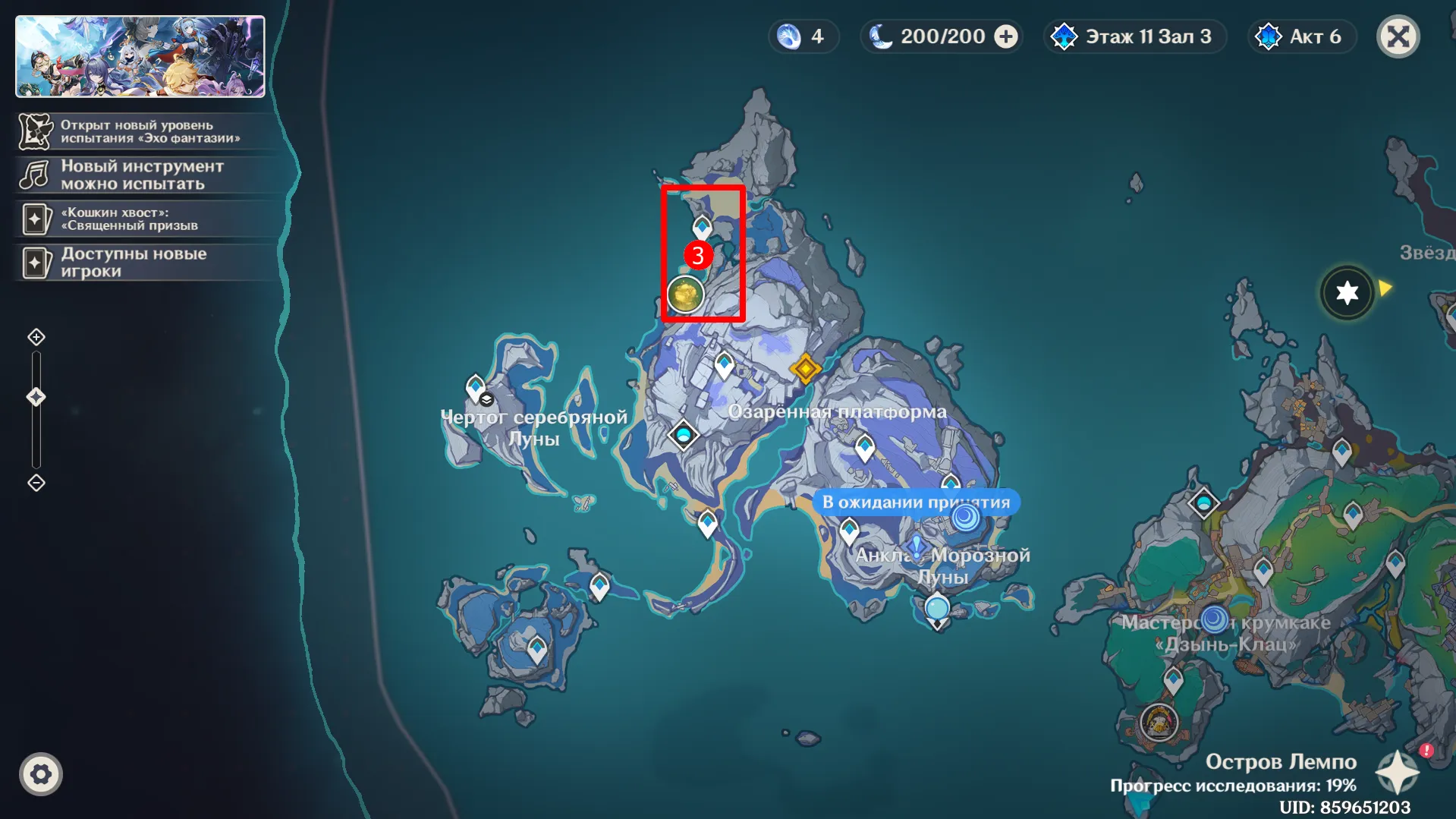 На берегу в окружении статуэток оленей найдёте запечатанный роскошный сундук, за который можно также получить 80 Камней Истока и другие полезные награды, включая книги опыта, руду и некоторые артефакты.