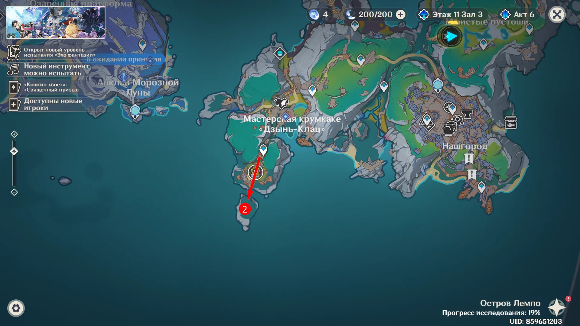 Вторая сокровищница тоже расположилась на территории острова Лемпо, но теперь уже на юге. Переместитесь к Мастерской крумкаке «Дзынь-Клац» и пройдите ещё немного южнее, мимо босса Железный утёнок.