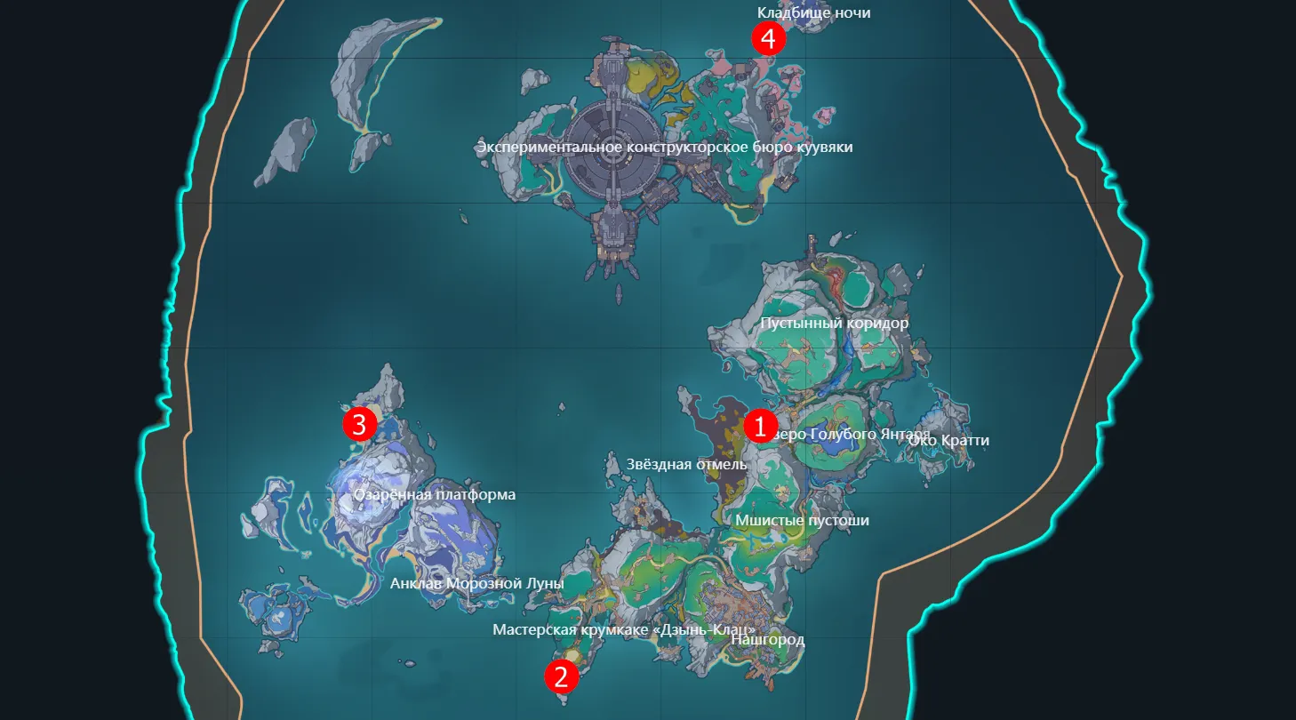 Всего на момент выхода региона в обновлении 6.0 можно отыскать четыре Усыпальницы глубин на каждом из островов Нод-Края. На карте указано местоположение всех сокровищниц. Далее подробно расскажем, как найти каждую из них.