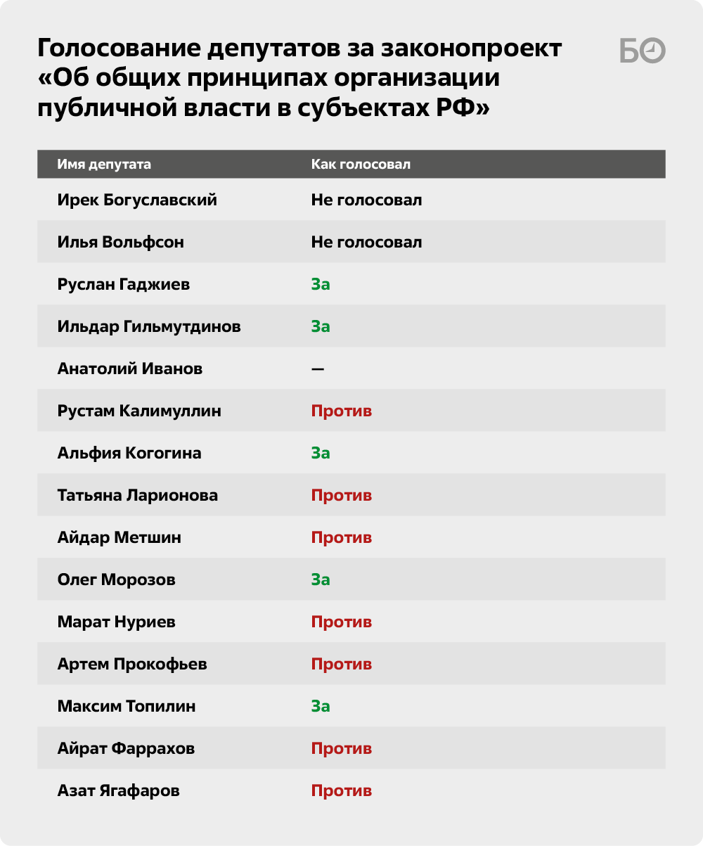 Еще одним примером, когда депутатам РТ пришлось консолидироваться, стала реформа МСУ, упраздняющая сельсоветы. Если в 2021 году законопроект без вопросов прошел первое чтение, то в 2024-м внезапно у Татарстана появились вопросы к этой инициативе. Как вспоминают парламентарии, им снова пришлось высказать фракции категорическое нежелание идти в общем фарватере. Опять же не все были готовы выступить против генеральной линии партии… К счастью, в том спорном виде законопроект до второго чтения так и не дошел. Голосование перенесли до внесения устраивающих республику поправок. Так что не получилось увидеть очередной срез преданных РТ депутатов.
