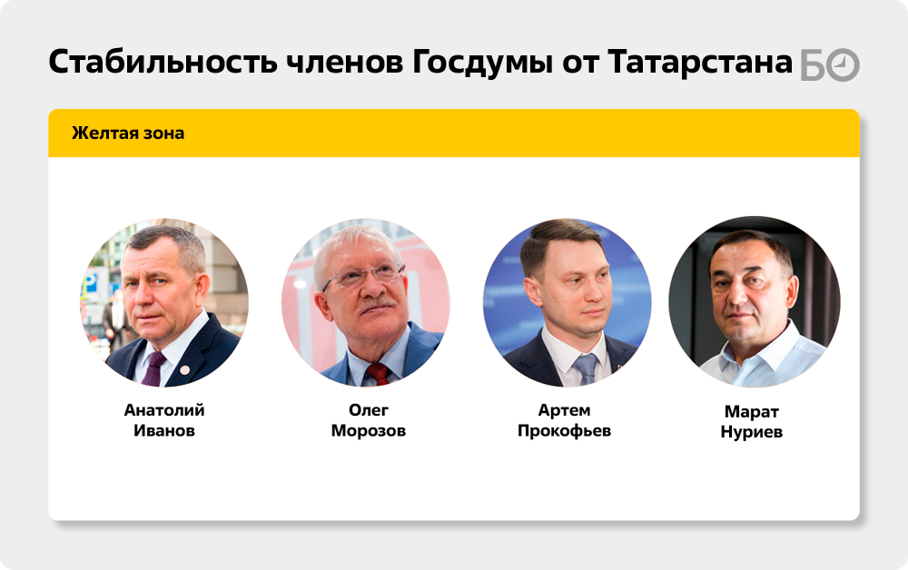 Что касается нынешнего состава депутатов, то даже некоторые парламентарии на данный момент не уверены в своих карьерных перспективах, поэтому, основываясь на беседах с парламентариями и информированными источниками во власти, мы составили таблицу «выживаемости» депутатов, представляющих Татарстан в Госдуме.