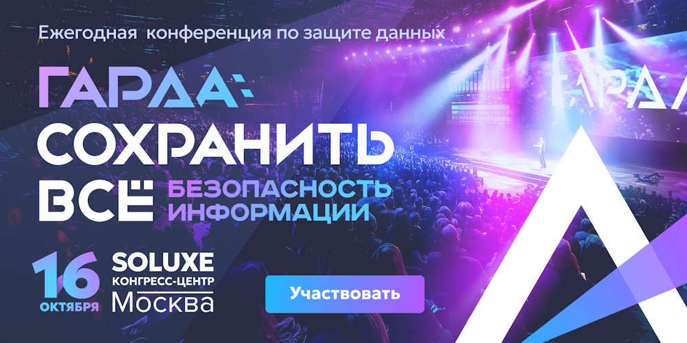 Приглашаем принять участие16 октября в одном из самых заметных IT-событий предстоящей осени! *Подтвердили свое участие, список пополняется Организатор мероприятия — группа компаний «Гарда» при поддержке ФСТЭК России и Минцифры. Дата проведения: 16 октября. Реклама: ООО «Гарда Технологии». ИНН 5260443081. Erid: 2SDnjeSM9h8Узнайте, как защищать данные в 2026 году