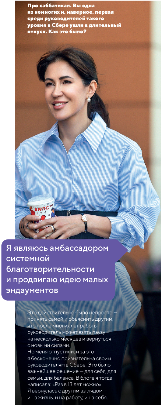 Но меня отпустили, и за это я бесконечно признательна своим руководителям в Сбере. Это было важнейшее решение — для себя, для семьи, для баланса. В блоге я тогда написала: «Раз в 13 лет можно». Я вернулась с другим взглядом — и на жизнь, и на работу, и на себя.