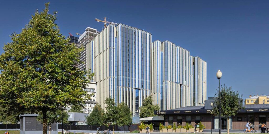 Офисное здание из трех корпусов сдано в составе многофункциональной застройки в Беговом районе по адресу: 1-я улица Ямского Поля, дом 2.