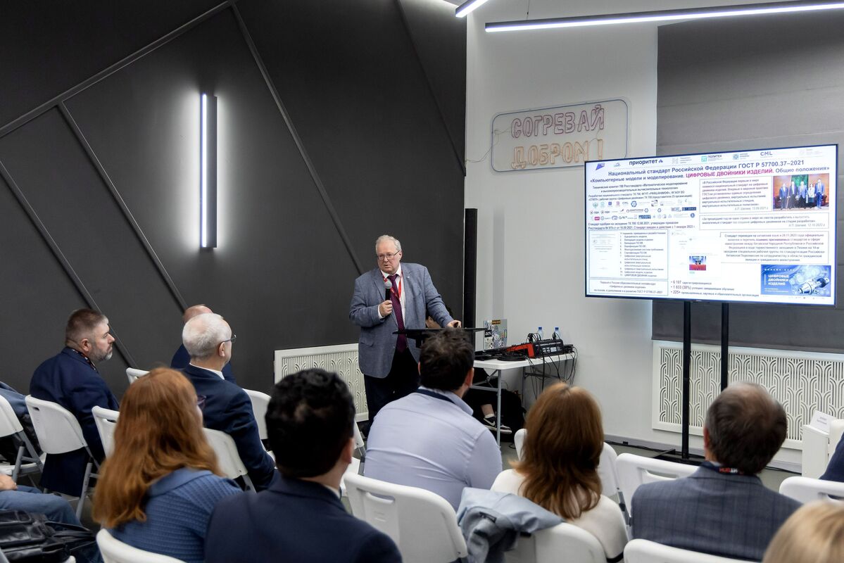 Боровков Алексей, главный конструктор по ключевому научно-технологическому направлению развития СПбПУ «Системный цифровой инжиниринг», директор ПИШ СПбПУ «Цифровой инжиниринг» выступил с докладом «Стандартизация в области цифровых двойников, цифровых моделей и цифровых испытаний».