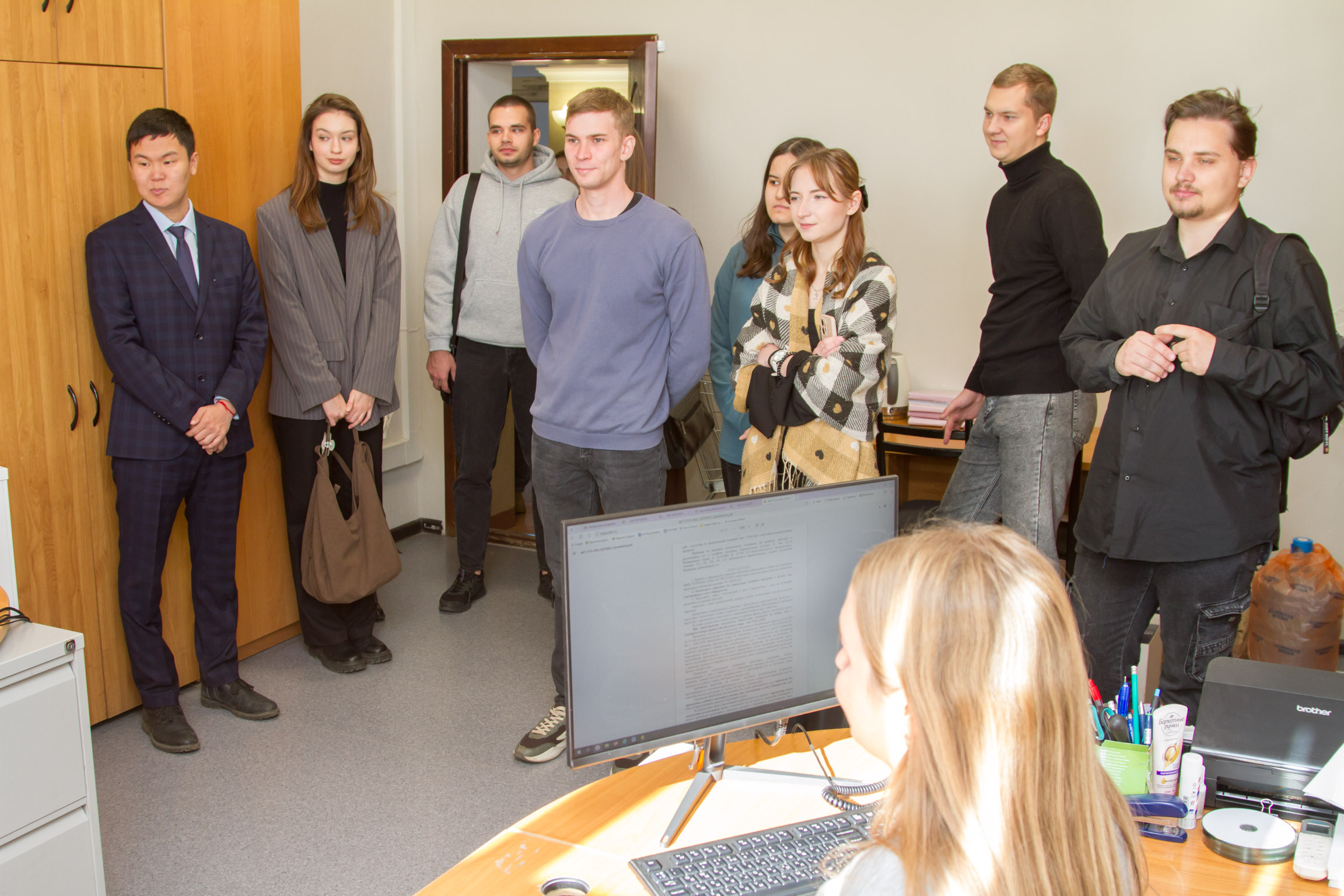 После официальной части мероприятия начальник отдела обеспечения судопроизводства Елена Галимжановна Чернова провела со студентами экскурсию по зданию суда. В ходе экскурсии учащиеся подробно узнали о создании и развитии Арбитражного суда Томской области, побывали в залах судебных заседаний, кабинетах помощников судей и секретарей судебного заседания, ознакомились с современными информационными технологиями, используемыми в судопроизводстве для дистанционного участия в судебных процессах, в том числе видеоконференц-связи и веб-конференции, возможностями электронного судопроизводства, в отделе делопроизводства ознакомились с существующим в суде порядком поступления и регистрации исковых заявлений.