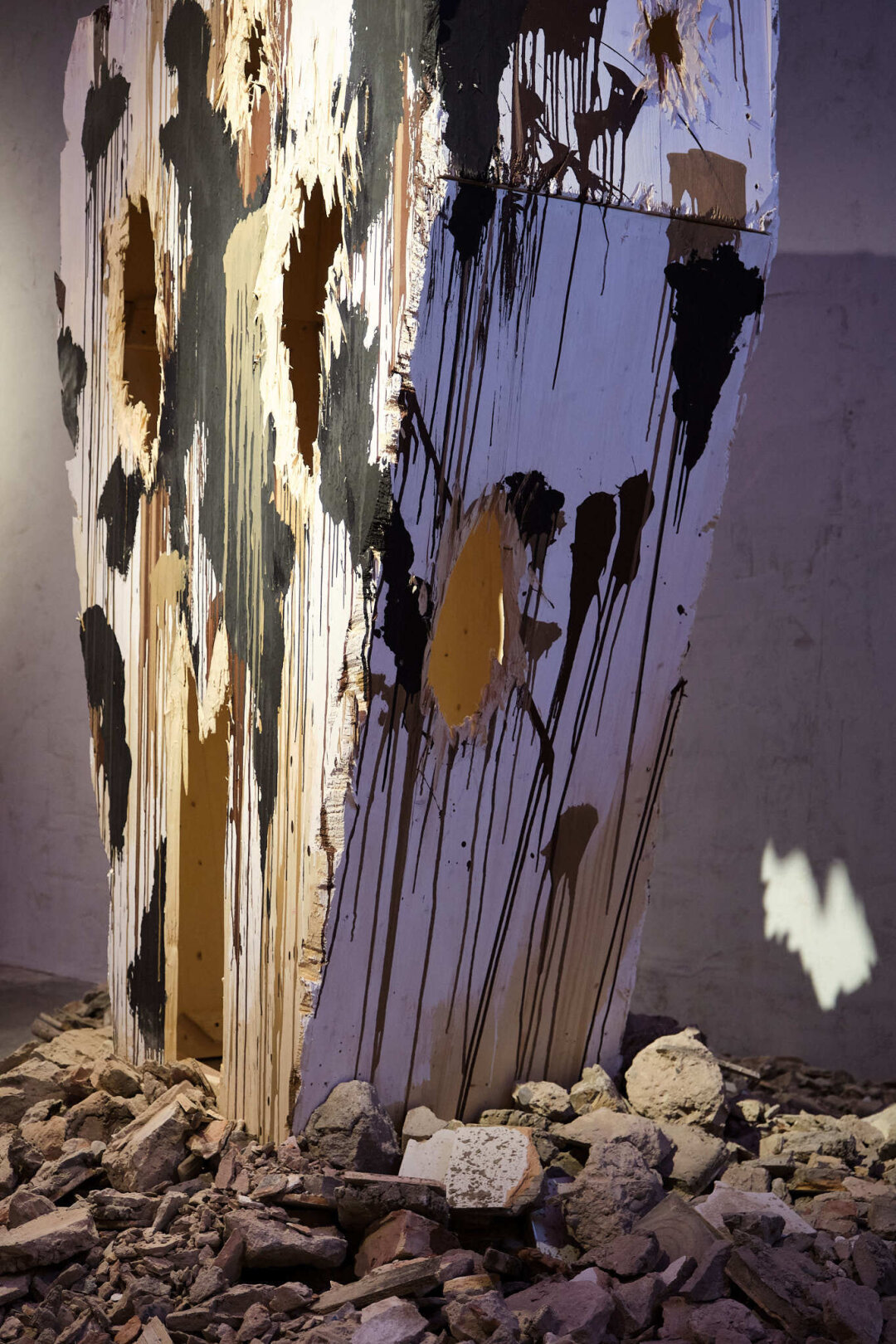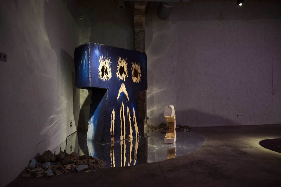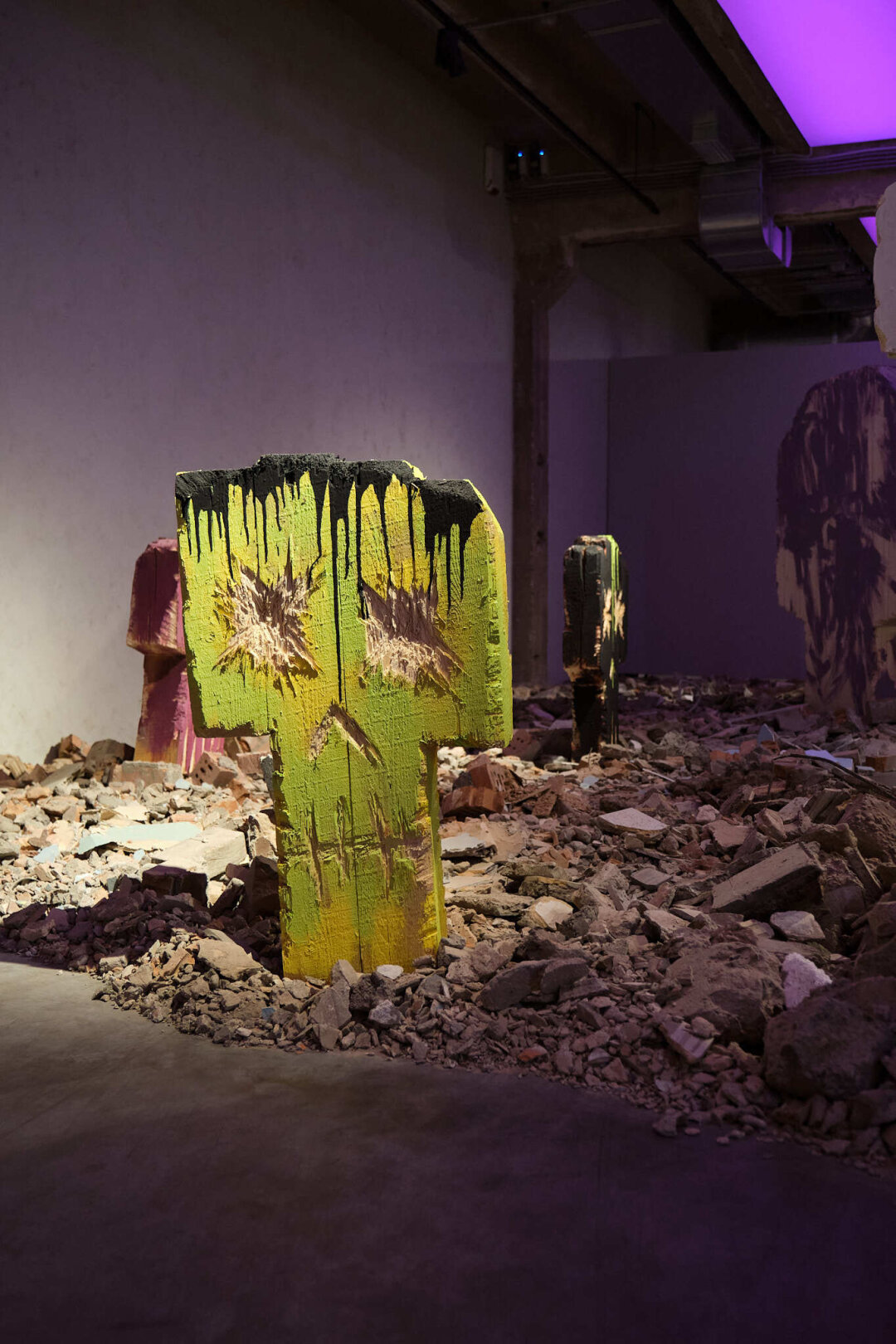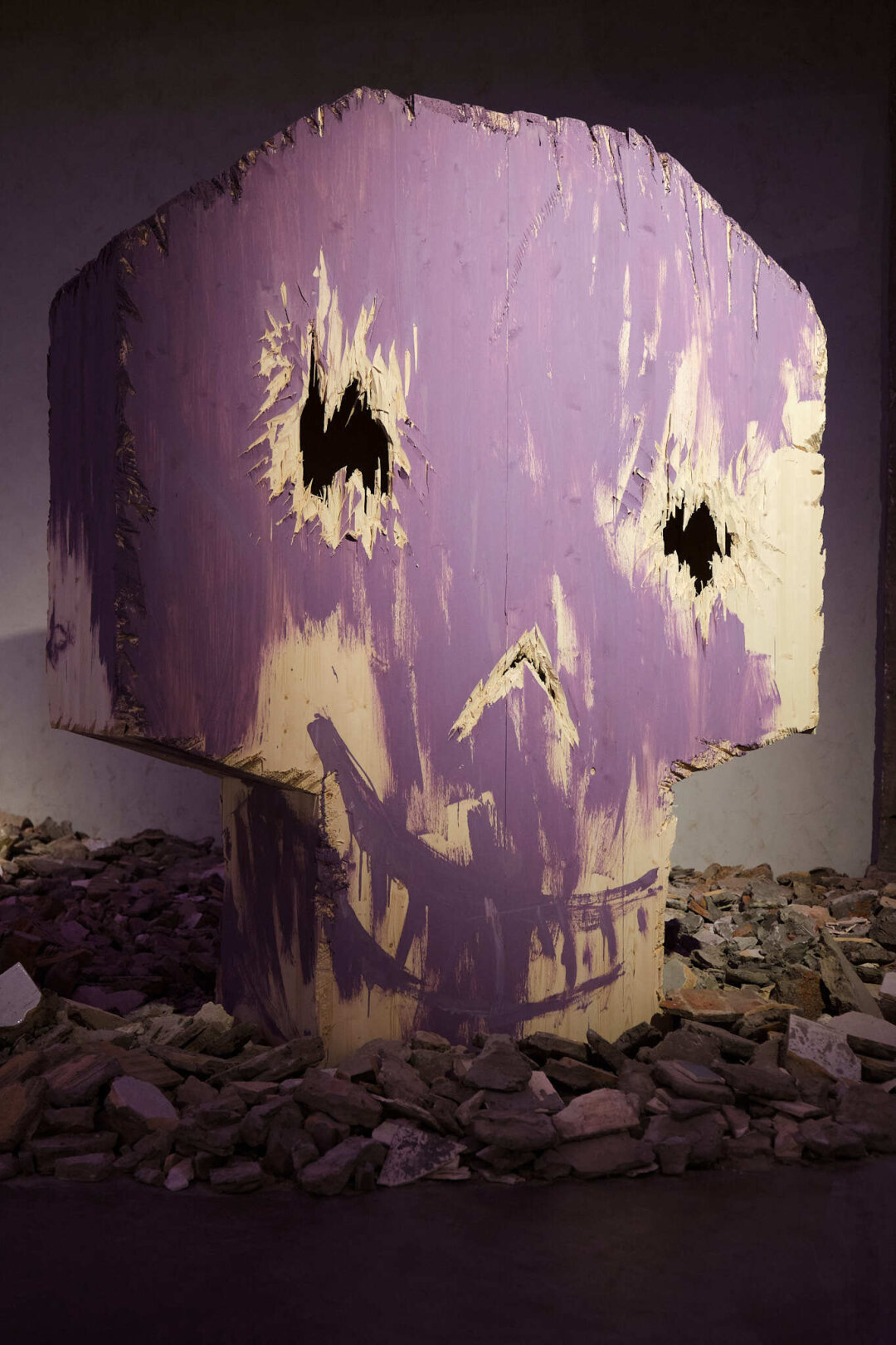 Экспозиция заняла оба зала галереи. В первом разместилась тотальная инсталляция-некрополь с серией черепов — памятников «бренности бытия, тщетности, недолговечности и временности существования». Во втором представлены отдельные арт-объекты и «деревописные» картины автора, созданные с отсылками к классическим иконографическим сюжетам. Среди них — диптих, отсылающий к изображениям освежеванных туш с картин голландцев XVI века, столик из опилок на мотив memento mori и многое другое.