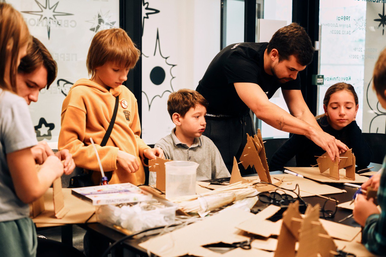 В интерактивной зоне в этот день участники вместе с экспертами Центра педагогического мастерства собирали гидравлические роборуки из подручных материалов и проводили эксперименты со звуком.