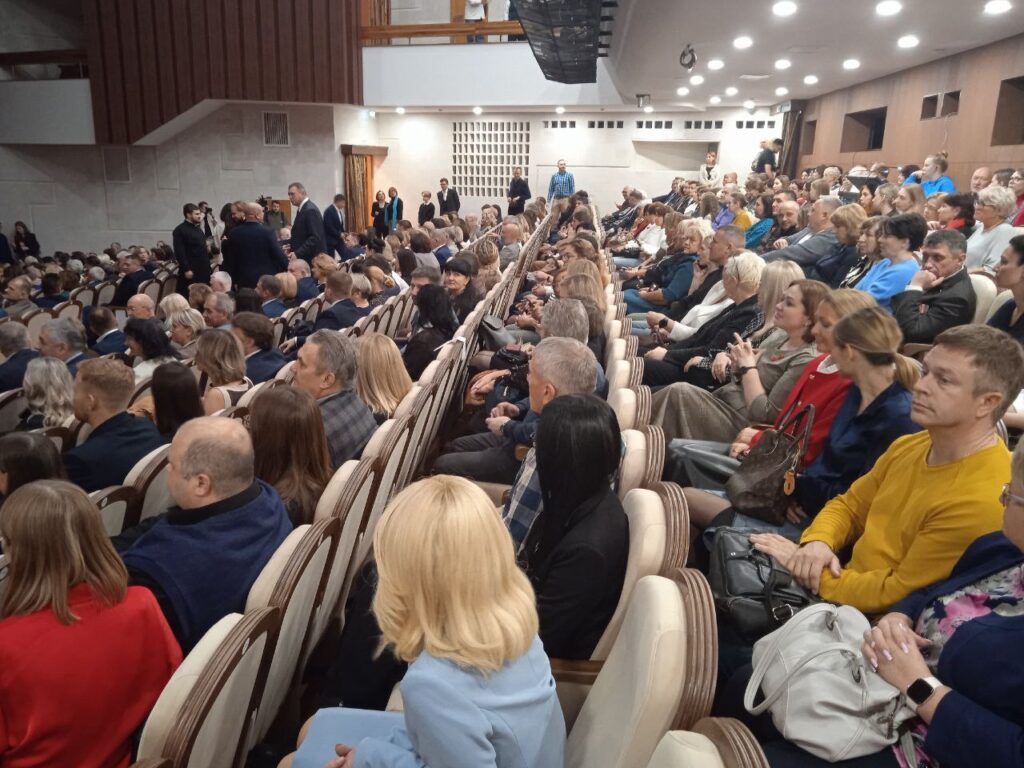 Зрительный зал был полон. Перед началом спектакля на сцену вышла вся труппа. Директор Владимирской драмы выступил с торжественной речью и поблагодарил коллег из филармонии, ОДК и центра культуры и искусства на Соборной за гостеприимство и помощь в трудное время. Несколько слов сказал и губернатор Александр Авдеев. Через несколько минут начался спектакль, который публика, конечно, приняла с благодарностью. Зрители аплодировали стоя.