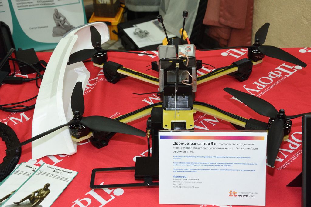 Первая площадка была посвящена пилотированию дронов. Гости Форума могли познакомиться с несколькими моделями беспилотников – миниатюрным Tello Talent, профессиональным DJI Mavic 4 Pro и учебным дроном «Ёж». Особенность последнего заключается в том, что его корпус выполнен из пенопласта, что делает устройство безопасным даже при столкновениях. Также на площадке был представлен DJI Mavic 4 Pro, оснащенный высококачественной камерой и датчиками для фотограмметрии. Данный набор позволяет назвать дрон оптимальным инструментом для решения инженерных задач и картографирования.