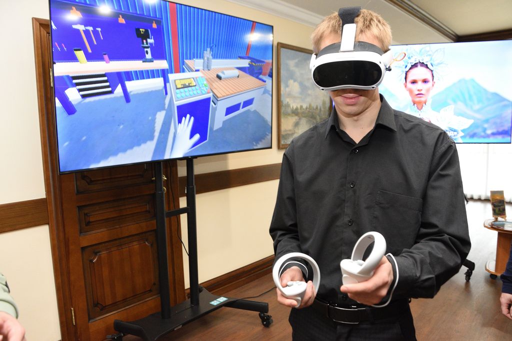 Третья площадка продемонстрировала возможности в области виртуальной реальности. Гости Форума могли попробовать себя в двух сценариях: «Полярник» – виртуальное путешествие на остров с пингвинами и «Работник завода» – симулятор производственных процессов на сверлильных, пильных и фрезерных станках.